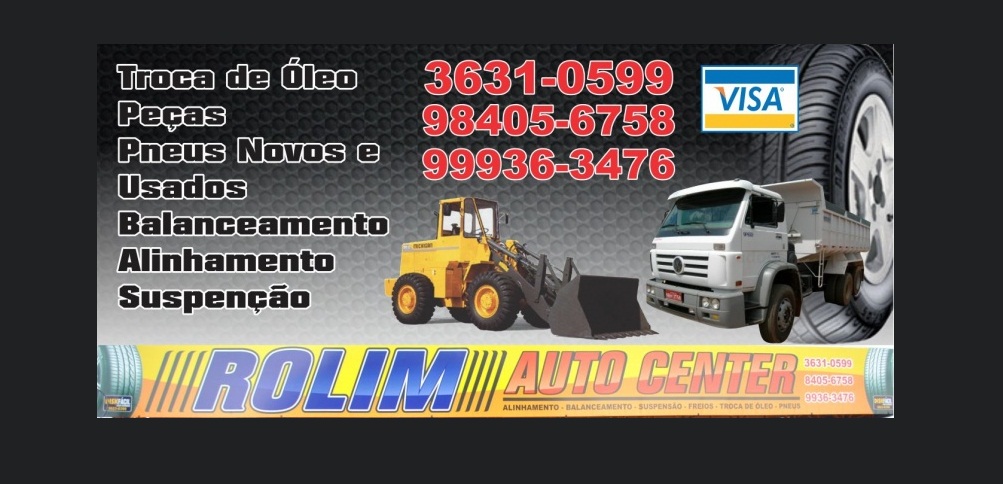Auto Center - Oficina Mecânica - Pneus Novos e Usados - Alinhamento - Balanceamento - Suspensão - Troca de Óleo - Troca de Pastilha de Freio - Filtro de Ar - Rolamento - Cambagem - Vulcanização - Alinhamento 3D - Limpeza de Bicos.